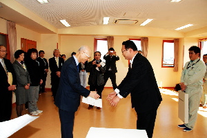 | 市医療介護病院関係者が出席し、約1年にわたる工事の安全と関係者の努力に感謝の思い |